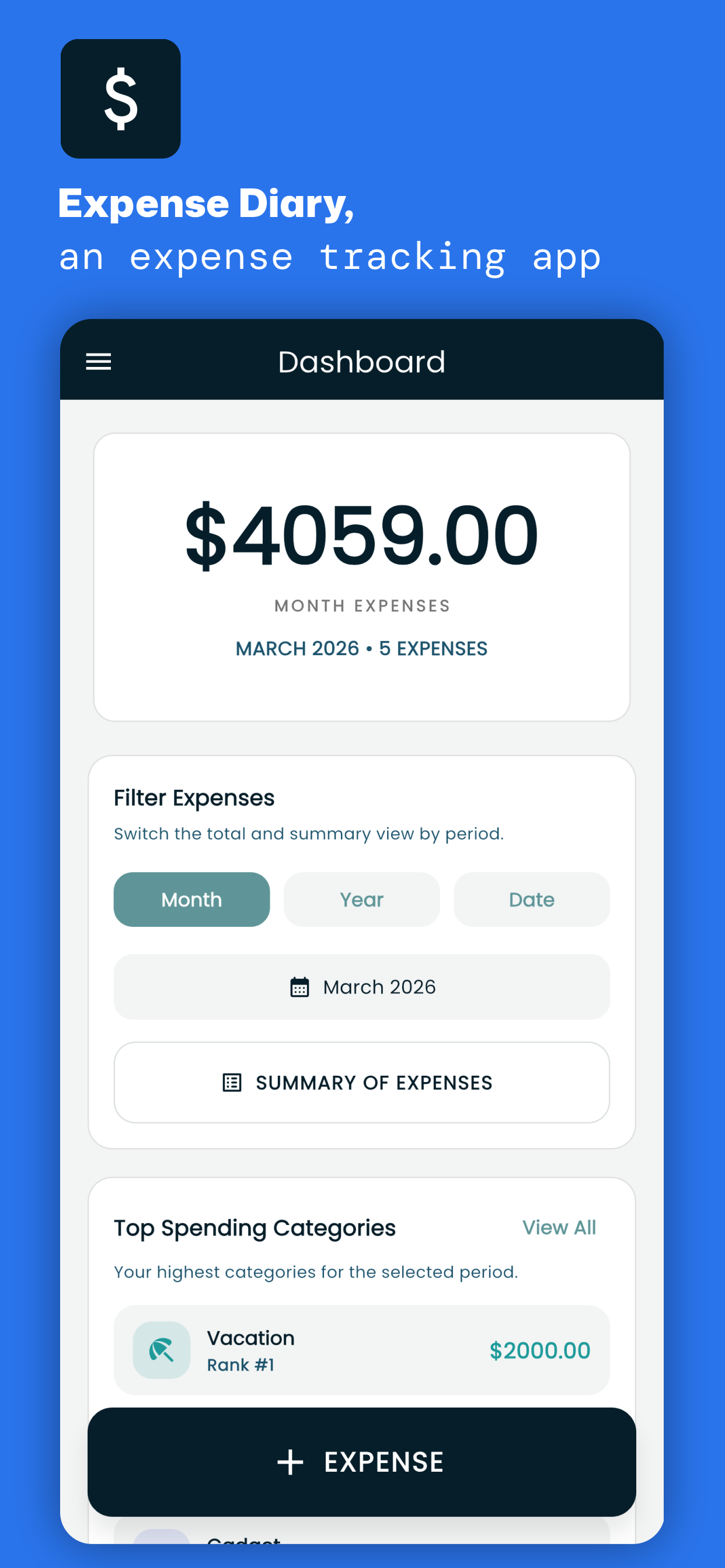 Expense Diary is built for fast entries, clear categories, and lightweight reviews. It keeps the money-tracking flow simple so the app feels useful every day, not just at the end of the month.